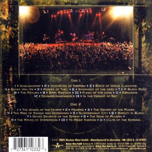Details: This comprehensive 2 disc release spans Therion's entire 15 year history. Recorded during their world tour in support of their last full-length release The Secret Of The Runes. This disc is totally live and contains no overdubs. Nuclear Blast. 2002.