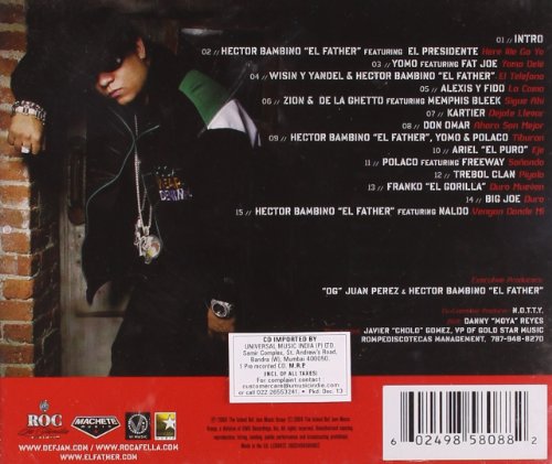 Details: Hector Bambino 'El Father' is considered today as a pioneer of the reggaeton movement. Having started his music career in the mid nineties as a producer/artist, he is viewed by many as the Dr. Dre of reggaeton. Despite his young age, Hector has been accredited with bringing reggaeton to the mainstream, as well as paving the way for the next generation of reggaeton artists including Tego Calederon, Daddy Yankee, Don Omar, and Winsin Y Yandel, to name a few. It makes perfect sense that he has decided to release a body of work that culminates traditional reggaeton music with progressive hip hop nuances. This is evident on Los Rompe Discotekas by the coupling of Hector himself and 'El Presidente' Jay-Z on the first single 'Here We Go Yo'. Other featured artists include Freeway, Don Omar, Fat Joe, Winsin Y Yandel, Memphis Bleek, & Alexis Y Fido. Roc La Familia and Hector Bambino 'El Father' presents Los Rompe Discotekas is filled with uptempo feel good rhythms, often recognized as the centerpiece to the pastimes of most youth culture today. Be sure to hear these tracks throughout the summer at parties, parades, sporting events and on your local radio stations. Get ready to be a part of history, as Roc La Familia releases the first of its kind Los Rompe Discotekas in stores June 20th.