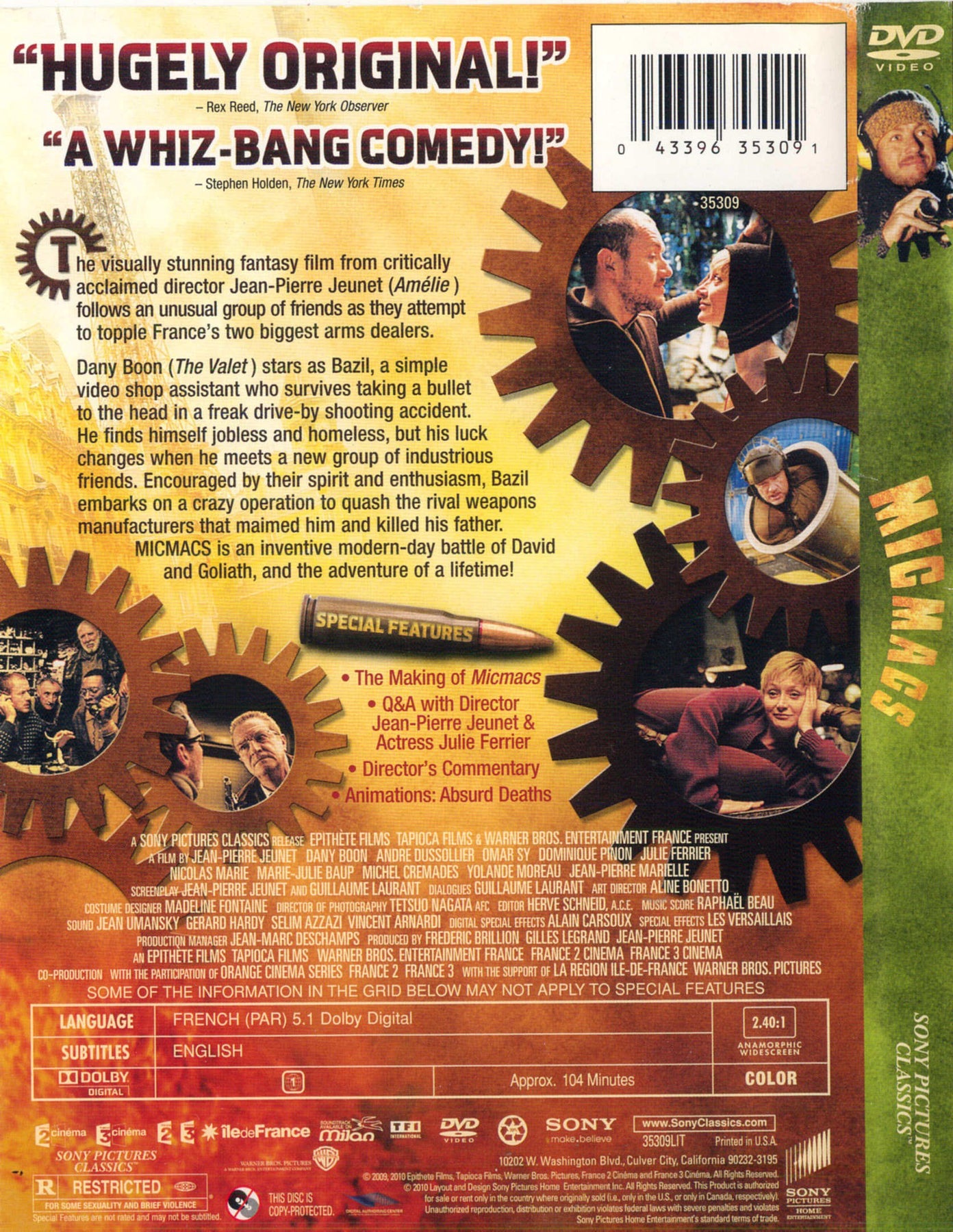 Details: First it was a mine that exploded in the middle of the Moroccan desert. Years later, it was a stray bullet that lodged in his brain... Bazil doesn't have much luck with weapons. The first made him an orphan, the second holds him on the brink of sudden, instant death. Released from the hospital after his accident, Bazil is homeless. Luckily, our inspired and gentle-natured dreamer is quickly taken in by a motley crew of junkyard dealers living in a veritable Ali Baba's cave. The group's talents and aspirations are as surprising as they are diverse: Remington, Calculator, Buster, Slammer, Elastic Girl, Tiny Pete, and Mama Chow. Then one day, walking by two huge buildings, Bazil recognizes the logos of the weapons manufacturers that caused all of his misfortune. He sets out to take revenge, with the help of his faithful gang of wacky friends. Underdogs battling heartless industrial giants, our gang relive the battle of David and Goliath, with all the imagination and fantasy of Buster Keaton...