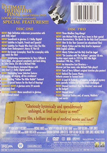 Details: Prior to 2015 Release Synopsis: Once in a lifetime there comes a motion picture that changes the whole history of motion pictures. A picture so stunning in its effect, so vast in its impact that it profoundly affects the lives of those who see it. That picture might well be MONTY PYTHON & THE HOLY GRAIL, and this we promise is definitely, positively its very last and ultimate edition. Re-mastered for Blu-ray high definition standards with picture and sound so clear that, as King Arthur and his Knights search for the Holy Grail, you can experience every severed limb, killer rabbit, coconut and shrubbery as never before. 2015 Release Synopsis: Once in a lifetime there comes a motion picture that changes the whole history of motion pictures. A picture so stunning in its effect, so vast in its impact that it profoundly affects the lives of those who see it. MONTY PYTHON & THE HOLY GRAIL might well be that motion picture. In celebration of its 40th Anniversary milestone, immerse yourse