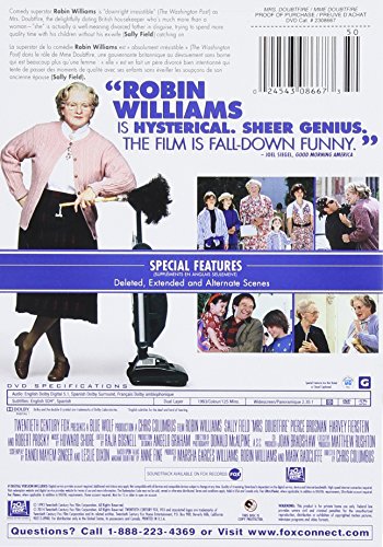 Details: Daniel Hillard (Robin Williams) is no ordinary father, so when he learns his ex-wife (Sally Field) needs a housekeeper, he applies for the job. With the perfect wig, a little makeup and a dress for all occasions, he becomes Mrs. Doubtfire, a devoted British nanny who is hired on the spot. Free to be the "woman" he never knew he could be, the disguised Daniel creates a whole new life with his entire family.