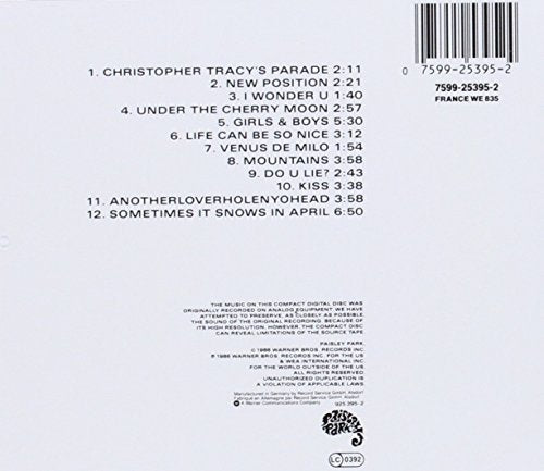 Details: Amazon.ca Calling this one of Prince's most interesting albums doesn't do justice to how kicky and playable it is. The soundtrack from his failed romantic comedy Under the Cherry Moon, the disc often sounds like a preview of the supremely surefooted quirkiness of its follow-up, the classic Sign o' the Times. Marrying lean funk grooves to over-the-top orchestrations and trying his hand at Parisian balladry and a hushed, Pet Sounds-style instrumental, he triumphs as few other record makers did in 1986. --Rickey Wright Product Description Prince
