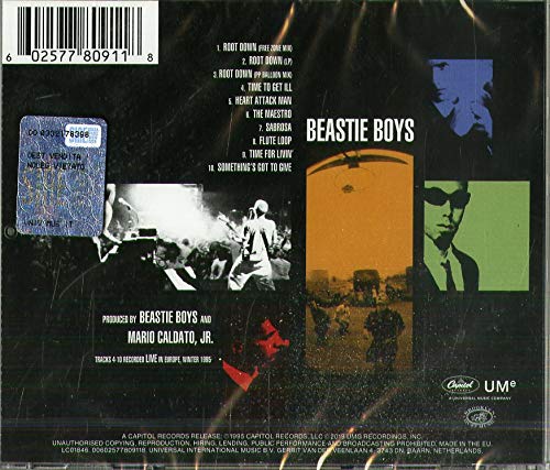 Details: The Root Down EP from Beastie Boys was released in 1995. The first three tracks are variations of the track "Root Down", and the remaining seven tracks were recorded "live in Europe, winter 1995". Out of print for years, this has been repressed on CD.