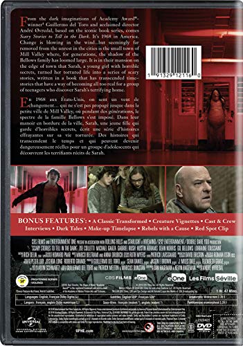 Details: From the dark imaginations of Academy Award®-winner Guillermo del Toro and acclaimed director André Øvredal, based on the iconic book series, comes Scary Stories to Tell in the Dark. It's 1968 in America. Change is blowing in the wind…but seemingly far removed from the unrest in the cities is the small town of Mill Valley where for generations, the shadow of the Bellows family has loomed large. It is in their mansion on the edge of town that Sarah, a young girl with horrible secrets, turned her tortured life into a series of scary stories, written in a book that has transcended time-stories that have a way of becoming all too real for a group of teenagers who discover Sarah's terrifying home. Bonus Content: A Classic Transformed Creature Vignettes Cast & Crew Interviews Dark Tales Make-up Timelapse Rebels with a Cause Red Spot Clip ]]>