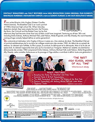 Details: From writer/director John Hughes (Sixteen Candles, Weird Science), The Breakfast Club is an iconic portrait of 1980s American high school life. When Saturday detention started, they were simply the Jock, the Princess, the Brain, the Criminal and the Basket Case, but by that afternoon they had become closer than any of them could have imagined. Featuring an all-star '80s cast including Emilio Estevez, Anthony Michael Hall, Judd Nelson, Molly Ringwald, and Ally Sheedy, this warm-hearted coming-of-age comedy helped define an entire generation! Bonus Content: Accepting the Facts: The Breakfast Club Trivia Track Sincerely Yours The Most Convenient Definitions: The Origins of The Brat Pack Theatrical Trailer Feature Commentary with Anthony Michael Hall and Judd Nelson ]]>