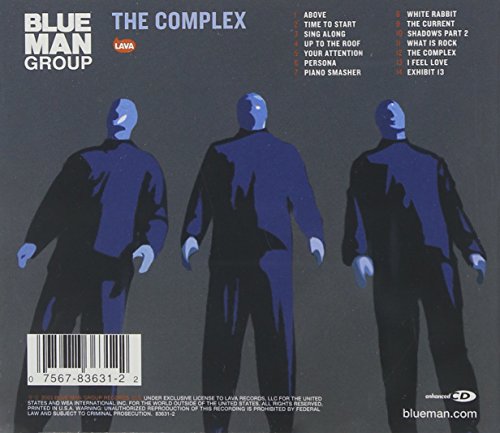 Details: Amazon.ca Take equal measures of Gallagher and Kraftwerk, mix in a 15-year supply of blue body paint and shake with a double-shot of modern marketing savvy and you might have something akin to Blue Man Group. This ambitious second album by New York performance artists cum entrepreneurs Matt Goldman, Phil Stanton, and Chris Wink expands their central artistic contradiction--mainstreaming the alternative--with a propulsive cocktail of rhythm, irony, self-invented instrumentation, and bona fide song structures that feature turns from guest stars Dave Matthews (the music hall dirge "Sing Along") and Tracy Bonham ("Up to the Roof," and with Rob Swift, "Shadows Pt.2"). The conceit is vaguely reminiscent of the Tubes' tongue-in-cheek ode to '80s corporate rock, "The Completion Backwards Principle," right down to being so convincing the irony often melts away. Fans of their live performances will appreciate its wall-to-wall rhythmic thrust and quirky textures, while aficionados and newcomers alike should welcome its surprising, seductive melodies and mature songwriting. --Jerry McCulley Product Description Blue Man Group will release their first, full-fled ged rock 'n' roll album the Complex featuring gues t collaborations with Dan the Automator, Tracy Bon ham, Esthero, Josh Haden, Dave Matthews, and other s.