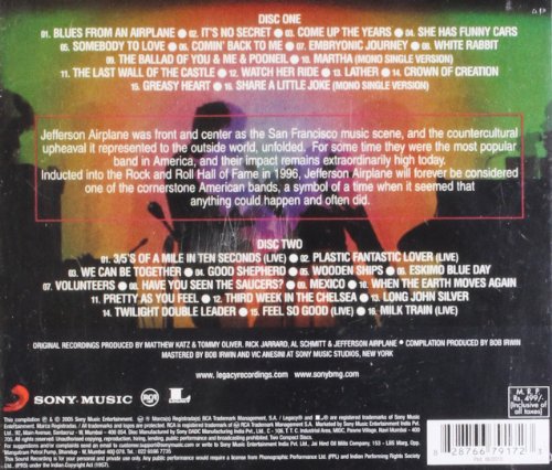 Details: Product Description Jefferson Airplane Amazon.ca Filling the double-disc void left by the excellent but sonically inferior and out-of-print 2400 Fulton Street: An Anthology, The Essential Jefferson Airplane digs deeper into the San Francisco band's catalog than the many single-disc collections available. Less expansive, but with better sound than the three-disc box set, Jefferson Airplane Loves You, this 32-track compilation covers the band's seven albums and two live offerings, giving nearly equal time to all. Not held in as high esteem as their Bay Area compatriots the , the Airplane successfully combined Marty Balin's expressive voice on such lovely folk-tinged love songs as "Comin' Back to Me," the apocalyptic visions of "Wooden Ships" (co-written by the Airplane's Paul Kantner with and ), the edgy, psychedelia of "The Ballad of You and Me and Pooneil" and the politically charged rallying cry of "Volunteers." Singer provided a photogenic focal point and dynamic interplay that meshed perfectly with the band's three male vocalists. Disc one clocks in at a relatively anemic 50 minutes, leaving nearly an unused half hour that could have included such influential album tracks as the band's version of Donovan's "The Fat Angel," "Won't You Try/Saturday Afternoon," "Triad ," and "Wild Thyme." Regardless, this is a well-chosen selection (with first-rate liner notes from JA historian Jeff Tamarkin) that highlights the Airplane's diverse influences as it echoed and exemplified the turbulent end of the '60s/beginning of the '70s. --Hal Horowitz Recommended Jefferson Airplane Discography Surrealistic Pillow After Bathing at Baxter's Crown of Creation Volunteers Live at the Fillmore East Jefferson Airplane Takes Off