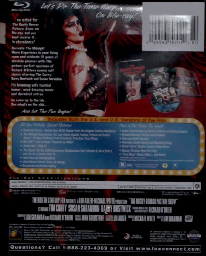 Details: Amazon.ca If a musical sci-fi satire about an alien transvestite named Frank-n-Furter, who is building the perfect man while playing sexual games with his virginal visitors, sounds like an intriguing premise for a movie, then you're in for a treat . Not only is The Rocky Horror Picture all this and more, but it stars the surprising cast of Susan Sarandon and Barry Bostwick (as the demure Janet and uptight Brad, who get lost in a storm and find themselves stranded at Frank-n-Furter's mansion ), Meat Loaf (as the rebel Eddie), Charles Gray (as our criminologist and narrator), and, of course, the inimitable Tim Curry as our "sweet transvestite from Transsexual, Transylvania." Upon its release in 1975, the film was an astounding flop. But a few devotees persuaded a New York theater to show it at midnight, and thus was born one of the ultimate cult films of all time. The songs are addictive (just try getting "The Time Warp" or "Toucha Toucha Touch Me" out of your head), the raunchiness amusing, and the plot line utterly ridiculous--in other words, this film is simply tremendous good fun. The downfall, however, is that much of the amusement is found in the audience participation that is obviously missing from a video version (viewers in theaters shout lines at the screen and use props--such as holding up newspapers and shooting water guns during the storm, and throwing rice during a wedding scene). Watched alone as a straight movie, Rocky Horror loses a tremendous amount of its charm. Yet, for those who wish to perfect their lip-synching techniques for movie theater performances or for those who want to gather a crowd around the TV at home for some good, old-fashioned, rowdy fun, this film can't be beat. --Jenny Brown Product description Fasten your garter belt and come up to the lab and see what's on the slab! It's The Rocky Horror Picture Show Special Edition, a screamingly funny, sinfully twisted salute to sci-fi, horror, B-movies and rock music, all rolled into one deliciously decadent morsel. And now there's even more to make you shiver with anticipation: two additional musical numbers, "Once In A While" and "Superheroes", never seen theatrically or available on video! The madcap, musical mayhem begins when rain-soaked Brad and Janet take refuge in the castle of Dr. Frank-N-Furter, a transvestite mad scientist from outer space who is about to unveil his greatest creation - and have a bit of fun with his reluctant guests! Join Tim Curry, Barry Bostwick, Susan Sarandon and rock star Meat Loaf in the most popular cult classic of all time.