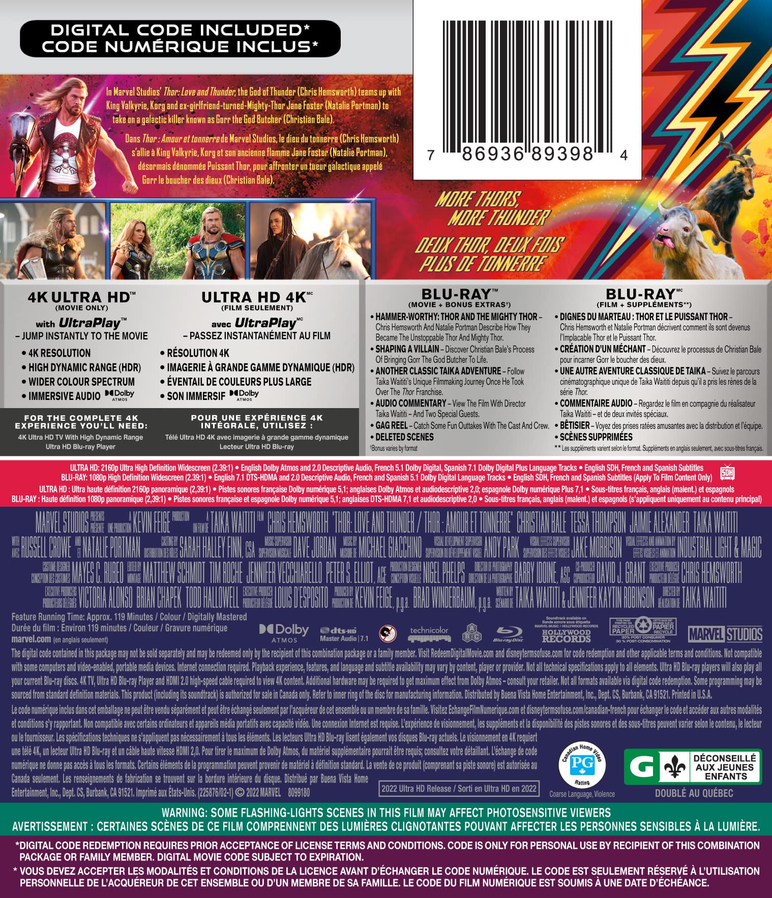 Details: In Marvel Studios' "Thor: Love and Thunder," the God of Thunder (Chris Hemsworth) teams up with King Valkyrie, Korg and ex-girlfriend-turned-Mighty-Thor Jane Foster (Natalie Portman) to take on a galactic killer known as Gorr the God Butcher (Christian Bale). WARNING: Some flashing-lights scenes in this film may affect photosensitive viewers.