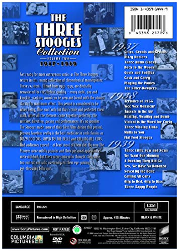 Details: Get ready for more outrageous antics as The Three Stooges return in this second collection of chronological masterpieces. These 24 shorts, filmed from 1937-1939, are dgitally remastered for the hightest quality - every sight, gag and knuckle-cracking sound can be seen and heard with the utmost clarity for maximum effect. This period is considered to be when Larry, Moe and Curly hit their stride and perfected their craft, when all the elements came together perfectly: the writing, directing, pacing, and performances. It's no wonder The Stooges made some of their best films during this period, proving laughter really is the best medicine in such classics as DIZZY DOCTORS, SAVED BY THE BELLE and CALLING ALL CURS. And audiences agreed - at least most of them did. By now The Stooges were wildly popular and their personal appearances were mobbed, but there were some who thought they were too violent and who over analyzed thier eye-poking, pie-throwing behavior.
