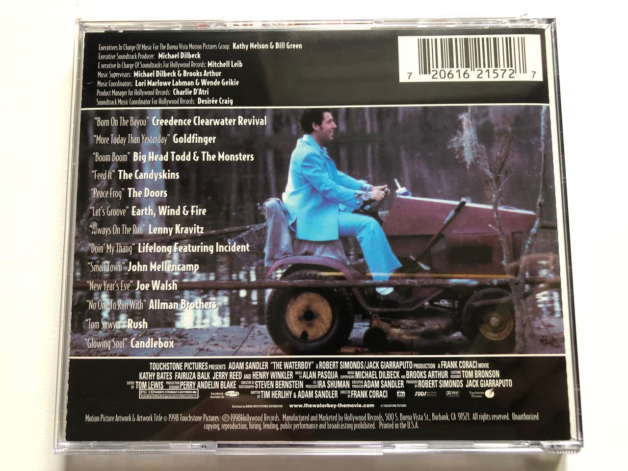 Details: Amazon.ca The original soundtrack to the runaway Adam Sandler hit The Waterboy features a cross-section of past hits and '90s favorites. The balance tilts toward classic rock, with Creedence Clearwater Revival's "Born on the Bayou," Rush's "Tom Sawyer," and John Mellencamp's "Small Town" leading the way. Among the modern cuts are Goldfinger's ska-tinged "More Today Than Yesterday," the Candyskins' hook-filled Britpop nugget "Feed It," and Candlebox's sprawling postgrunge epic "Glowing Soul." The film's producers exhibit an almost overly eclectic taste, with Earth, Wind & Fire's funky "Let's Groove" sharing disc space with the Doors' groovy antiwar anthem "Peace Frog" and a Big Head Todd & the Monsters cover of John Lee Hooker's bluesy stomp "Boom Boom." Like the soundtrack to Sandler's other '90s smash, The Wedding Singer, this collection strives to attract a wide range of music fans. --Richard Martin Product description Waterboy ~ The Waterboy