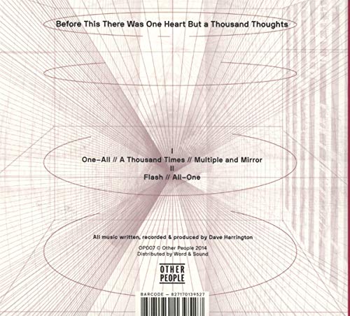 Details: Dave Harrington (of Darkside)’s first solo release is a two track, multi-movement EP called ‘Before This There Was One Heart But A Thousand Thoughts’. Casting synapses between his work as as a multi-instrumentalist, DJ and producer, Harrington leads a sonic odyssey through this latticed world rich in wild experimentation and sublime, combustible beauty. Journeys of rapture turn into journeys of fear and then to bright light. An upright bass creaks up and down woody scales for a moment of formless, astral groove then sizzles off to a field of shimmering tambura-like drones and reversed guitar chords. Clusters of percussive metal writhe and clang. Deep, growling static contracts and contracts to a point, pumping out new sounds like solar flares. The pings of a high keyed synth rush by like stars. For Harrington, what begins as one ends in many places—every sound is infinite.Track 1: One-All // A Thousand Times // Multiple And Mirror - 10:53Track 2: Flash // All-One – 9:48
