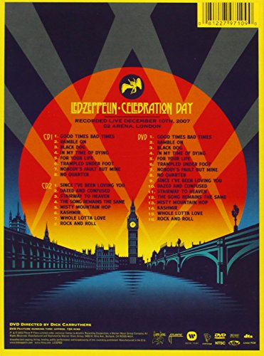 Details: On December 10, 2007, Led Zeppelin took the stage at London’s O2 Arena to headline a tribute concert for dear friend and Atlantic Records founder Ahmet Ertegun. What followed was a two-hour-plus tour de force of the band’s signature blues-infused rock ’n’ roll that instantly became part of the legend of Led Zeppelin. Founding members Robert Plant, Jimmy Page and John Paul Jones were joined by Jason Bonham, the son of their late drummer John Bonham, to perform 17 songs from their celebrated catalog including landmark tracks “Whole Lotta Love,” “Rock And Roll,” “Kashmir,” and “Stairway To Heaven.” A film of the show, "Celebration Day, is now available on DVD and Blu-ray and includes the entire 16 song concert in HD video and in 5.1, 48 khz/20 bit hi-resolution audio surround sound."Celebration Day" is an incredible document of the now legendary concert, which has been described as possibly the greatest rock and roll concert ever. The two hour feature length film is presented in beautiful high definition video, and stunning audio quality. The aspect ratio is 16x9. The film is directed by Dick Carruthers who had previously worked with Led Zeppelin on their award winning 2003 release "DVD" - a release that remains one of the highest selling music DVD's of all time. The "Celebration Day" film is already critically acclaimed and the CD + DVD & Blu-ray releases are certain to become consistently high selling titles in the Led Zeppelin catalog. A bonus DVD in the deluxe versions features the dress rehearsal at Shepperton Studios, filmed a few days before the O2 concert. The band play the entire set that was to be performed at the O2, and this DVD gives the customer a unique insight into the final rehearsal. The rehearsal is filmed by a single camera in SD and recorded in stereo.