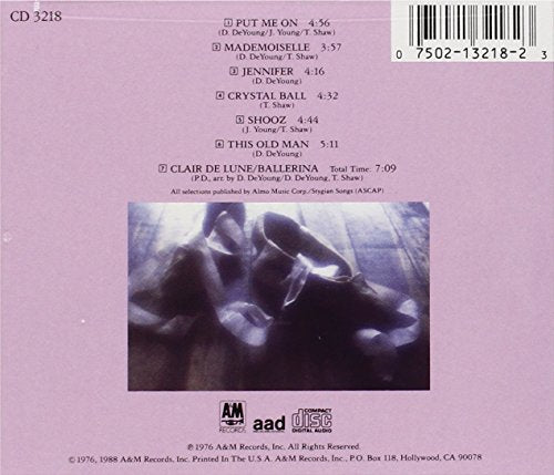 Details: Guitarist Tommy Shaw joined Styx in time for this 1976, helping the band begin the rise that would soon take them to the top. The album was a hit and Mademoiselle went Top 40; it joins Put Me On; Crystal Ball; This Old Man, and more theatrical pop!