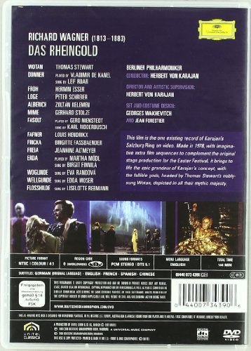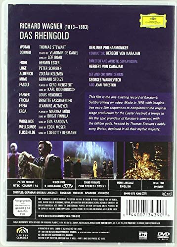Details: This 1978 studio production of the prologue to Wagner's masterpiece is the only segment of the famous Salzburg FestivalMetropolitan Opera productions, first seen in the 1960s, that made it to film. Based on one of those original productions, Georges Wakhevitch produced stage settings and transformations that supported Karajan's concept with every possible means. Herbert Von Karajan's staging is in the epic style of another age, emphasizing the dignity of the gods rather than their all too human failings. With the singers - foremost among them Peter Schreier - Karajan had an ensemble that fully conformed to his intentions.