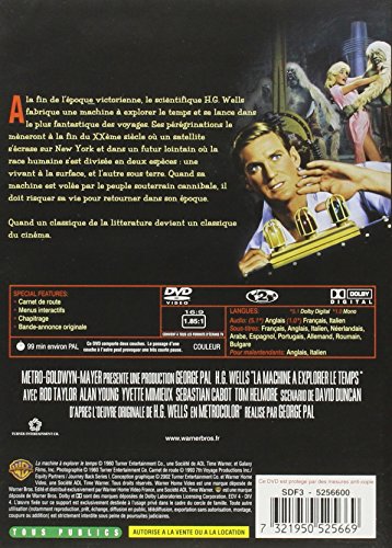 Details: DVD ZONE 2 NEUF Langues : Français, Anglais, Italien Sous titres : Français, Anglais, Italien, Néerlandais, Espagnol, Portugais, Allemand, Roumain A líépoque victorienne, un scientifique fabrique une machine à voyager dans le temps. Dans le futur, il síaperçoit que les humains vivent différemment, et que le peuple est divisé en deux. Líun des plus célèbres films de science-fiction !