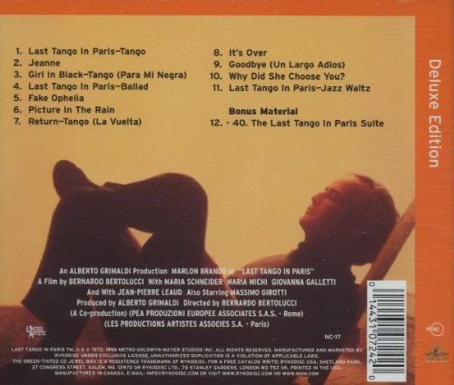 Details: Amazon.ca Steeped in controversy upon its release in 1973, director Bernardo Bertolucci's Last Tango in Paris has since been called everything from nonutilitarian pornography to a cinematic masterpiece. Two key elements that Bertolucci utilized to breath life into Tango's nihilistic themes and the dark, obsessive relationship at its core were Marlon Brando's harrowing, largely improvised performance and the erotically charged jazz score of self-taught Latin sax virtuoso Gato Barbieri. While the musician's main theme has become a much-covered jazz standard, it's but a tantalizingly sexy sample of the cross-cultural stylings at work in this masterful score. While Barbieri rerecorded the core of his Tango music in lush, fleshier arrangements for the soundtrack album's initial release, this Ryko edition (nearly twice the length of the original) augments those tracks with a compelling half-hour suite of cues culled directly from the film's scoring sessions. By turns stark and sentimental, erotic and experimental, these previously unreleased cues form a revelatory new "second movement" to Barbieri's hauntingly familiar score. --Jerry McCulley
