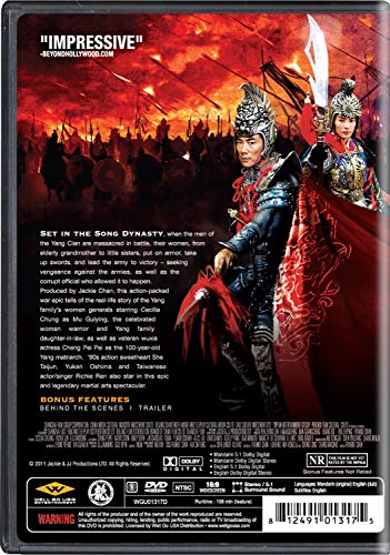 Details: Set in the Song Dynasty, when the men of the Yang Clan are massacred in battle, their women, from elderly grandmother to little sisters, put on armor, take up swords, and lead the army to victory seeking vengeance against the armies, as well as the corrupt official who allowed it to happen. Produced by Jackie Chan, this action-packed war epic of the real-life story of the Yang family s women generals stars Cecilia Chung as Mu Guiying, the celebrated woman warrior and Yang family daughter-in-law, as well as veteran wuxia actress Cheng Pei Pei as the 100-year-old Yang matriarch. '90s action sweetheart She Taijun, Yukari Oshima and Taiwanese actor/singer Richie Ren also star in this epic and legendary martial arts spectacular.