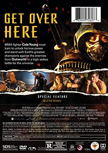 Details: MMA fighter Cole Young, accustomed to taking a beating for money, is unaware of his heritage—or why Outworld's Emperor Shang Tsung has sent his best warrior, Sub-Zero, an otherworldly Cryomancer, to hunt Cole down. Fearing for his family's safety, Cole goes in search of Sonya Blade at the direction of Jax, a Special Forces Major who bears the same strange dragon marking Cole was born with. Soon, he finds himself at the temple of Lord Raiden, an Elder God and the protector of Earthrealm, who grants sanctuary to those who bear the mark. Here, Cole trains with experienced warriors Liu Kang, Kung Lao and rogue mercenary Kano, as he prepares to stand with Earth’s greatest champions against the enemies of Outworld in a high stakes battle for the universe. But will Cole be pushed hard enough to unlock his arcana—the immense power from within his soul—in time to save not only his family, but to stop Outworld once and for all?