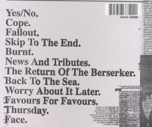 Details: Product description THE FUTUREHEADS News And Tributes (2006 UK 12-track CD the Sunderland four-pieces second album including the singles Skip To The End Worry About It Later and the Munich air disaster-inspired News And Tributes fold out newspaper style picture sleeve) Amazon.ca Best known for a spastic, heavily accented post-punk cover of Kate Bush's "Hounds of Love" that went Top 10 in the UK, this British quartet attempts to kick away from its '80s-inspired comrades--such as Franz Ferdinand and Kaiser Chiefs--on their second album. Not that there's any shortage of spiky riffs, jerky rhythms, and off-kilter harmonies on News and Tributes. But get past the more pedestrian fare like "Yes/No" and "Return of the Berserker," and the full scope of the Futureheads' ambition reveals itself, particularly in the poppiest track, "Skip To The End." Meanwhile, "Thursday" is laced with a distinct doo-wop feel, "Favours for Favours" shows the band's softer side, and the jagged "Burnt" proves that the group can approach greatness on a song of its very own. --Aidin Vaziri