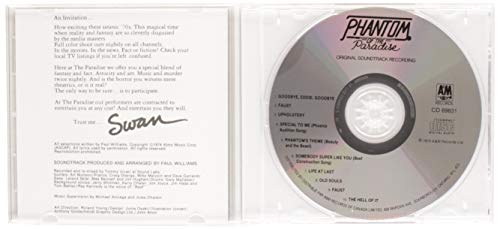 Details: Original soundtrack to the 1974 cult classic composed by Paul Williams. Phantom of the Paradise is an American musical film written and directed by Brian de Palma. The story is a loosely adapted mixture of the Phantom of the Opera, the Picture of Dorian Gray and Faust. Initially, it was a box office failure and was panned by some critics but has since acquired a cult following. It's music was nominated for an Academy Award and a Golden Globe Award.