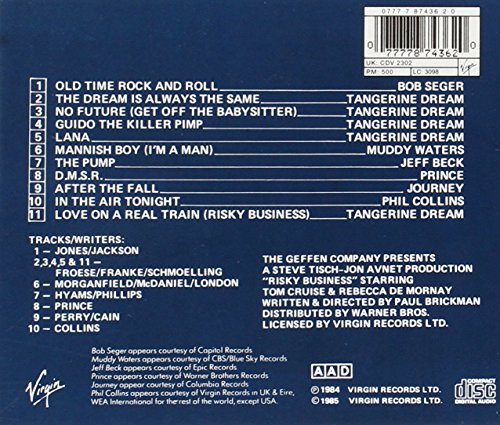 Details: 1985 Virgin release, the soundtrack to director PaulBrickman's 1983 comedy starring Tom Cruise, RebeccaDeMornay, Joe Pantoliano and Bronson Pinchot. 11 tracks,including classics by Bob Seger, Phil Collins, Muddy Waters,Prince, Journey & Jeff Beck, plus five unforgettableinstrumental works by Tangerine Dream.