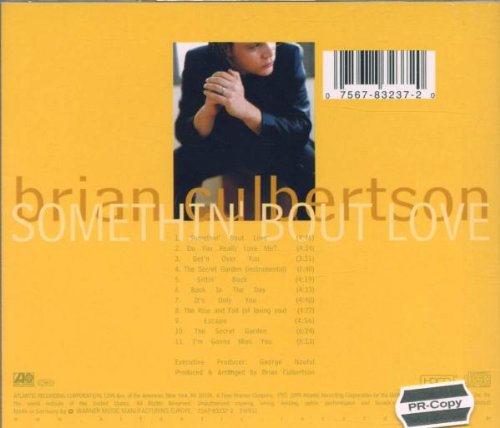 Details: Amazon.ca Brian Culbertson has been working more and more with live musicians on his sessions, and it adds a new depth and stronger grooves to his floating keyboard sounds on Somethin' 'Bout Love. There are terrific guest spots by saxophonists Dave Koz and Steve Cole and organist Ricky Peterson, as well as some potent bass from Walter Tisdale. R&B singer Lori Perry increases the soul quotient on her song "Get'n Over You" as well as the concluding "I'm Gonna Miss You," a moving collaboration between Perry and Culbertson. The latter vies for top honors with the two versions of "The Secret Garden," one instrumental and the other a great feature for Donnell Spencer's voice. --Adam Rains Product Description The fifth label release from acclaimed composer and multi-instrumentalist, SOMETHIN''BOUT LOVE stands ready to introduce this multi-talented artist Brian Culbertson to a broad new audience while re-affirming the dedication of fans already in the know. As Culbertson's most accomplished and far-reaching work to date, the album finds a new R&B-fueled sound - one as soulful and touching as anything heard on today's NAC or Urban airwaves.