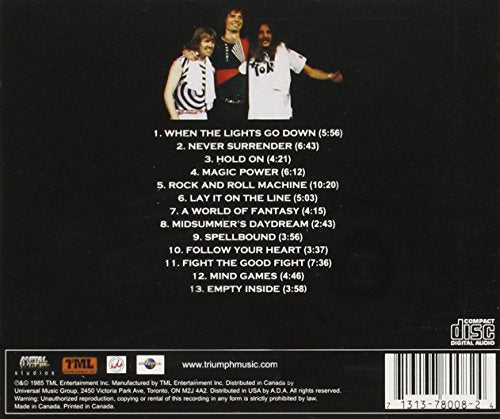 Details: Originally released in 1985, this is the ultimate Triumph live album, capturing the magic power of the thundering live concert experience that was the band's trademark. A great cross-section of hits, plus two studio tracks.