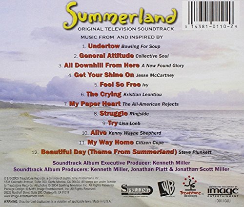 Details: Product Description This CD contains a link to a secret Summerland Website. Features songs by Jesse McCartney & New Found Glory. Image. 2005. Amazon.ca The WB network's popular series finds California fashion designer Ava Gregory's (Lori Loughlin) hip beachfront lifestyle turned topsy-turvy when a family tragedy spurs her to take custody of her niece and two nephews. The show's buoyant soundtrack plays off those often bittersweet familial concerns with a collection that's by turns spunky and introspective. The energetic punk-pop of Bowling for Soups "Undertow," Collective Soul's "General Attitude" and "All Downhill From Here" from Florida's New Found Glory kick the collection off in high gear, before the blue-eyed, teeny-pop-soul of Jesse McCartney's hit "Get Your Shine On" breaks the spell. Alt.vets Lisa Loeb and New York's Ivy offer quieter, more poignant intrigues, while Kenny Wayne Shepherd dishes up the arena-scaled "Alive" and newcomers Kristian Leontiou and Ringside round out the collection with haunting R&B angst and club-friendly grooves, respectively. --Jerry McCulley