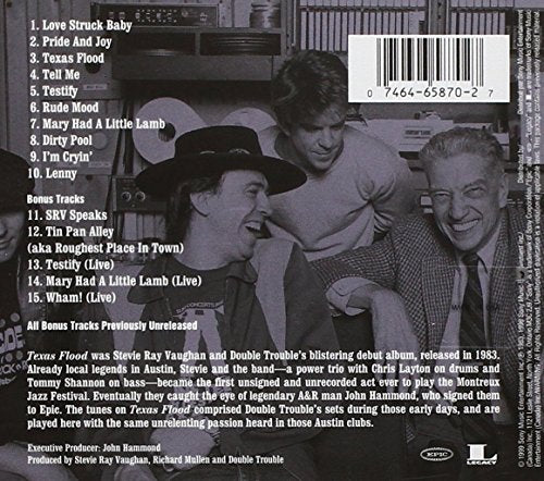 Details: Amazon.ca This legendary 1983 debut by the fallen torchbearer of the '80s-'90s blues revival sounds even more dramatic in its remixed and expanded edition. Stevie Ray Vaughan's guitar and vocals are a bit brighter and more present on this 14-track CD. And the newly included bonus numbers (an incendiary studio version of the slow blues "Tin Pan Alley" that was left off the original release, and live takes of "Testify," "Mary Had a Little Lamb," and the instrumental "Wham!" from a 1983 Hollywood concert) illuminate the raw soul and passion that propelled his artistry even when he was under the spell of drug addiction. Texas Flood captures Vaughan as rockin' blues purist, paying tribute in his inspired six-string diction to his influences Larry Davis (who wrote the title track), Buddy Guy, Albert King, and Jimi Hendrix. His own contemplative "Lenny," a tribute to his wife at the time, also suggests a jazz-fueled complexity that would infuse his later work. --Ted Drozdowski Product Description Vaughan, Stevie Ray
