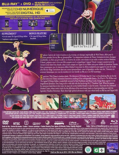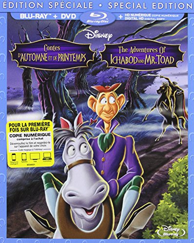 Details: Experience Walt Disney's timeless classic, THE ADVENTURES OF ICHABOD AND MR. TOAD. Disney animation's humorous retelling of two unforgettable classics, THE WIND IN THE WILLOWS and THE LEGEND OF SLEEPY HOLLOW, wonderfully narrated by Basil Rathbone and Bing Crosby, brings them together in one magnificent adventure. First, hang on for a wild ride with the fun-loving Mr. J. Thaddeus Toad. When his passion for motorcars lands him in hot water, he must rely on his faithful friends to clear his name. Then, meet the infamous Ichabod Crane whose comic rivalry for the affections of the town beauty leads to a heart-pounding race with the legendary Headless Horseman. Share these high-spirited adventures with your whole family!|Legend has it that the animator assigned to this film departed to serve in the Army during World War II, then returned four years later only to resume animating the exact same sequence he'd been working on!|Several of the characters from MR. TOAD appear in the 1983 short, "Mickey's Christmas Carol": Cyril, Toad (as Scrooge's first employer), Rat and Mole (as collectors for the poor), and two of the weasels (as gravediggers).|The film was originally titled TWO FABULOUS CHARACTERS.|Despite his huge nose, huge ears, and wispy red hair plaited tightly into a pigtail, Ichabod is portrayed as a ladies' man in the film.|"The Legend Of Sleepy Hollow" (ICHABOD) section of the movie is one of the few instances in a Disney film in which a bully -- Brom Bones -- gets the girl.