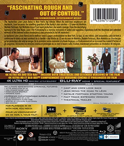 Details: The mysterious Léon (Jean Reno) is New York's top hitman. When his next-door neighbors are murdered, Léon becomes the unwilling guardian of the family's sole survivor - 12-year-old Mathilda (Natalie Portman). But Mathilda doesn't just want protection; she wants revenge. From the electrifying opening to the fatal finale, THE PROFESSIONAL is a nonstop crescendo of action and suspense. UHD Release 2017 The mysterious Léon (Jean Reno) is New York’s top hitman. When his next-door neighbors are murdered, Léon becomes the unwilling guardian of the family’s sole survivor – 12-year-old Mathilda (Natalie Portman). But Mathilda doesn’t just want protection; she wants revenge. From the electrifying opening to the fatal finale, Léon: The Professional is a nonstop crescendo of action and suspense. Experience both the theatrical and extended versions of this beloved action masterpiece, now presented in full 4K resolution.