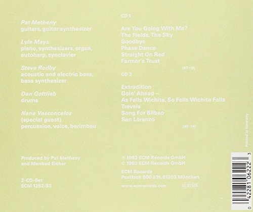 Details: Amazon.ca This two-CD set was recorded live during several 1982 concerts, covering music that grew out of the studio recordings As Falls Wichita, So Falls Wichita Falls and Offramp. At this stage, the Pat Metheny Group was a quintet with longtime partners Lyle Mays on piano, organ, and synthesizers; Dan Gottlieb on drums; Steve Rodby on bass; and Nana Vasconcelos, contributing a distinctive Brazilian element, on percussion and voice. Touring constantly, the group successfully balanced their increasingly electronic sound and spontaneity with Vasconcelos's rhythmic ingenuity, which clearly acted as stimulus to Metheny's consistently inventive guitar work. It's a fitting commemoration of the tremendous success that the Metheny Group had begun to enjoy, both a travelogue of their concert venues and an in-depth look at their diverse material. --Stuart Broomer