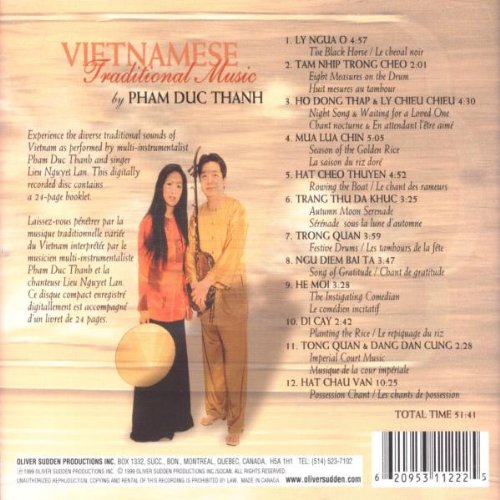 Details: Internationally acclaimed dan bau player, Pham Duc Thanh was born in Ninh Binh, northern Vietnam, in 1956. Displaying a remarkable musical aptitude as a child, Pham was already playing the dan bau (monochord) as well as the dan tranh (16-string zither) and dan nhi (two-string fiddle) by the age of six. In 1974, Pham moved to Hanoi, where he studied at a popular traditional theatre school and joined the leading Hat Cheo theatre group as a dan bau player. After attending Saigon's Research Center for Music, he went on to become one of country's top dan bau players of traditional and contemporary music. In August 1990, Pham and his wife, singer Lieu Nguyet Lan, left Vietnam and moved to Germany for several years before emigrating to Canada in 1996. Today, the Montreal-based multi-instrumentalist is known as one of the world's leading exponents of traditional Vietnamese music. Besides his solo work, Pham has also appeared on over 20 internationally released CDs including the movie soundtrack for Tony Bui's Three Seasons, winner of the Grand Jury Prize and Audience Award at the 1999 Sundance Film Festival.